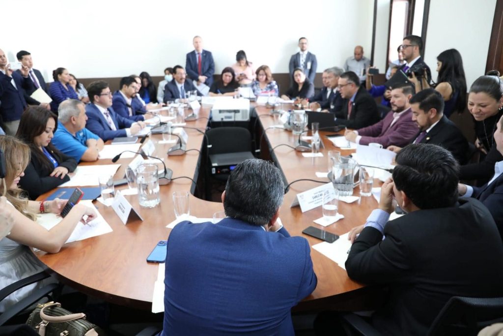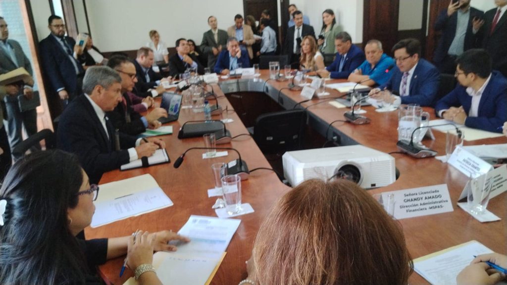 Hoy el diputado Julio Héctor Estrada, quien preside la comisión de Finanzas, juntamente con varios diputados se reunieron con la viceministra administrativa de Salud, Sandra Aparicio y el viceministro de Finanzas Figueroa, así como con los dos representantes del BCIE, Miguel Almeida y Mario Yanes.