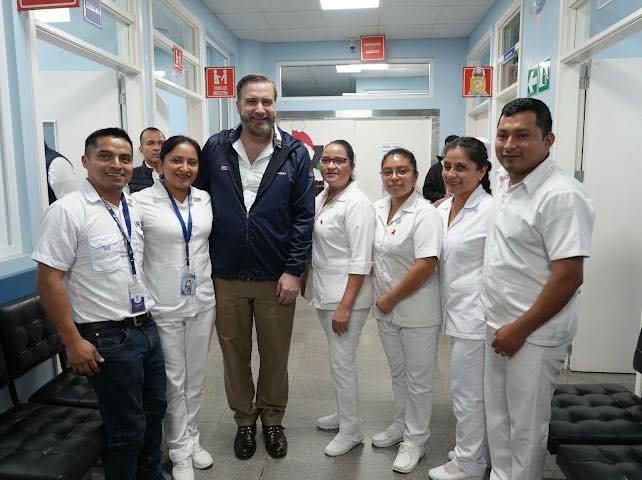 Con representantes del Ministerio de Salud y el ministro en funciones, Dr. José Donato Camey, el Embajador visitó el Hospital Regional de Cobán en donde interactuó con personal de salud capacitado con asistencia estadounidense, enfocada en reducir muertes materno-infantiles, prevenir brotes, y aumentar las brigadas locales de personal de salud.