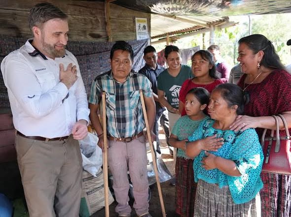 En San Juan Chamelco, el Embajador celebró la firma de una nueva alianza entre Hábitat para la Humanidad y clubes rotarios de Guatemala para la instalación de pisos de cemento, extendiendo los beneficios de esta iniciativa que promueve la salud y desarrollo económico en Alta Verapaz, expandiendo su alcance en el país y ofreciendo alternativas a la migración ilegal.