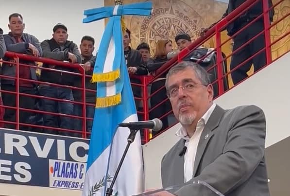 “Es un gusto y emotivo venir a cantar el himno con guatemaltecos que están viviendo en los Estados Unidos” expresó Arévalo a los migrantes de Guatemala