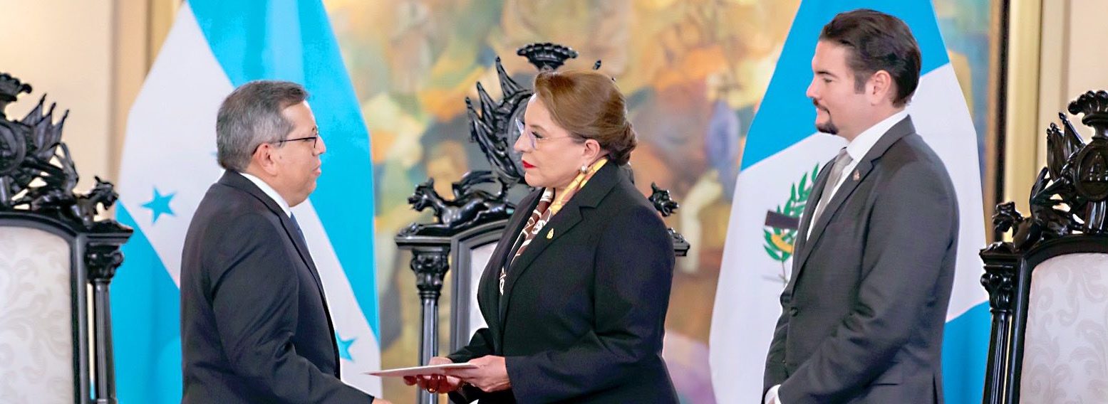 La Presidenta de Honduras Xiomara Castro recibió las Cartas Credenciales del embajador de Guatemala, el ex superintendente de la SAT Marco Livio Díaz Reyes, reafirmando el compromiso de ambos pueblos de fortalecer los lazos de hermandad, cooperación y desarrollo compartido.