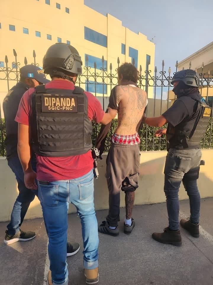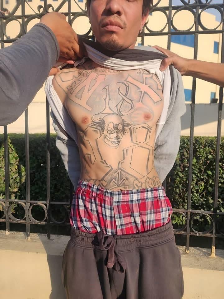 El trabajo de investigación de campo de policías de la DIPANDA permite ubicar en la 1ª calle y 2ª avenida zona 2 de La Esperanza, Quetzaltenango, al marero salvadoreño José Antonio Aguilar Quiñonez, de 29 años, alias “Seco o Clan” con tatuajes en su cuerpo que lo identifican como pandillero e integrante de la clica Vatos Locos Sureños de la pandilla del Barrio 18, con rango de Ranflero en El Salvador.