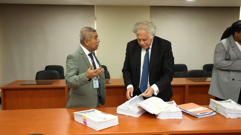 La doctora María Consuelo Porras Argueta, Fiscal General de la República y Jefe del Ministerio Público (MP), recibió la visita del doctor Luis Almagro, secretario general de la Organización de los Estados Americanos (OEA), a quien le reiteró las acciones legítimas que el MP ha realizado en cumplimiento de su mandato legal y constitucional, al dar seguimiento a una denuncia ciudadana relacionada con el Partido Movimiento Semilla
