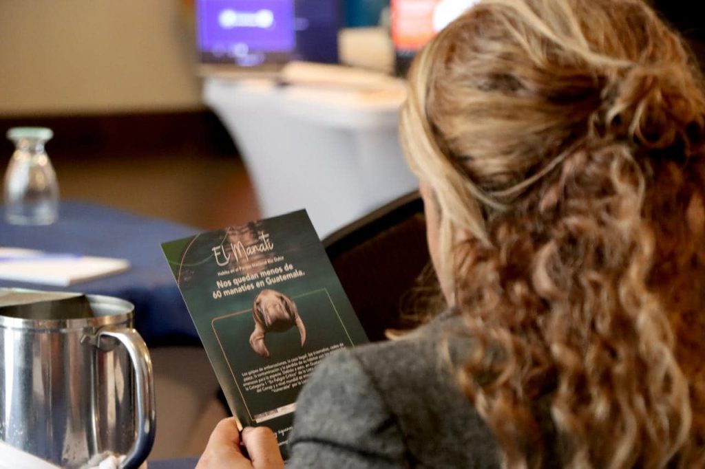 El evento se realizó con la presencia de Jenifer Calderón, Directora Ejecutiva de FUNDESEM; Alejandro Santizo, representante de UICN; Fabiola Corona, bióloga experta en manatíes quien actualmente trabaja en el Centro de Conservación de manatíes en Quintana Roo, México y es doctorando en ECOSUR, México; Tania Sandoval, Andres Caal Chalib y Ariel Saavedra del Consejo Nacional de Áreas Protegidas (CONAP); Mario Diaz de la Dirección de Ecosistemas del Ministerio de Ambiente y Recursos Naturales (MARN) y Waleska Sterkel de Ortiz, Directora Ejecutiva de la Cámara de Comercio Guatemalteco-Americana (AmCham Guatemala), quien felicitó a la organización y mencionó la creación de una mesa de medioambiente dentro del Comité de RSE y Sostenibilidad.