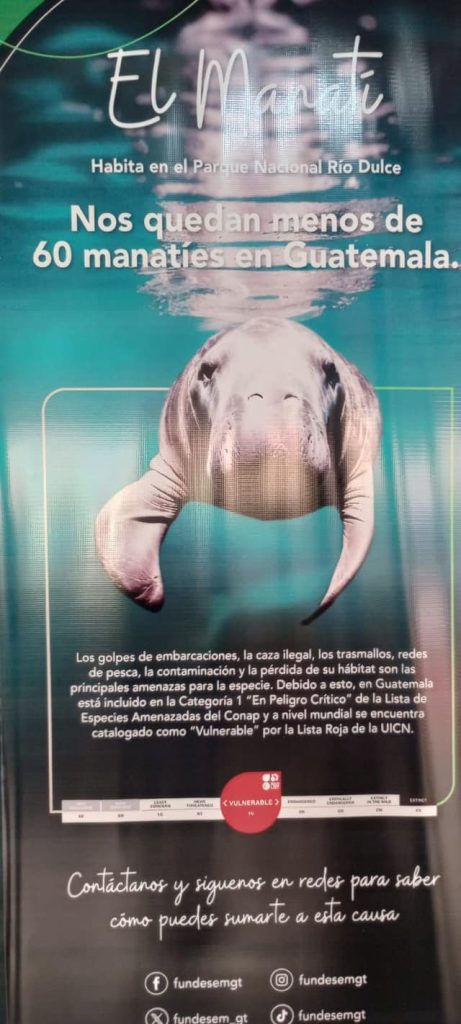 Los representantes de CONAP indicaron que esta especie se encuentra en la Categoría 1 de la Lista de Especies Amenazadas, lo cual es un indicador de que está en peligro crítico o en vías de extinción en el territorio nacional. Por ello el país cuenta con una Estrategia Nacional para la Conservación del Manatí con acciones que se están implementando para su protección.