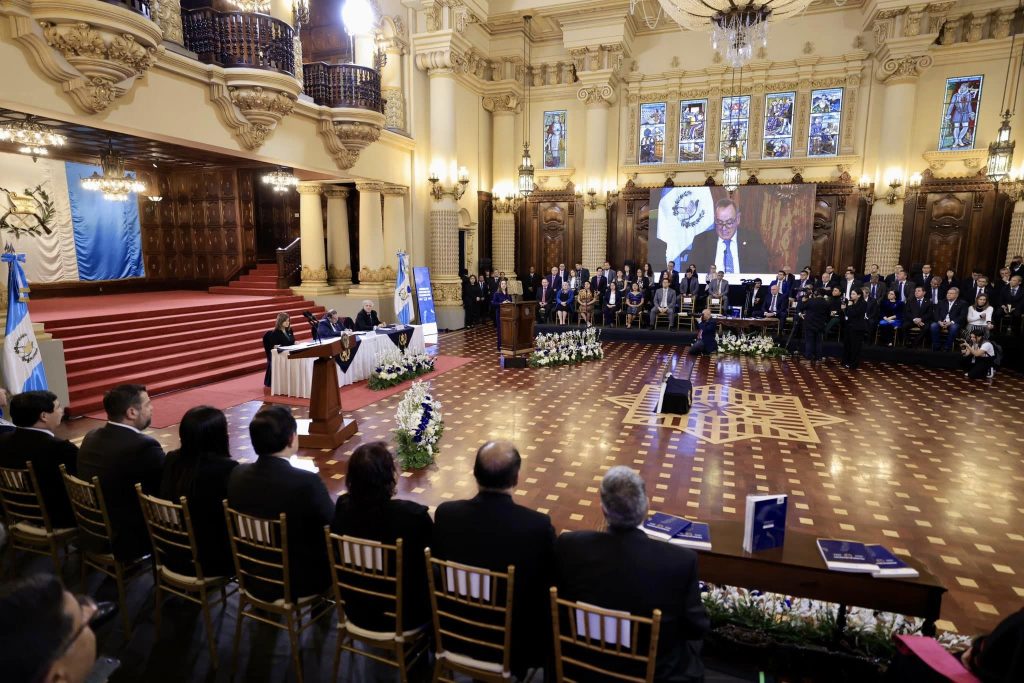 El emblemático Salón Banderas, del Palacio Nacional de la Cultura, fue la sede de la entrega del Informe de Transición por parte del presidente Alejandro Giammattei a las autoridades electas para el período 2024-2028.