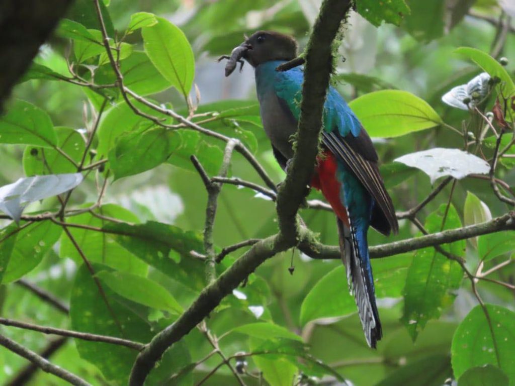 Robin Calderón, guardarrecursos del Consejo Nacional de Áreas Protegidas (Conap), compartió imágenes de una pareja de quetzales con alimento para su cría, un acontecimiento que refuerza la importancia de la conservación y el monitoreo de estas aves emblemáticas.