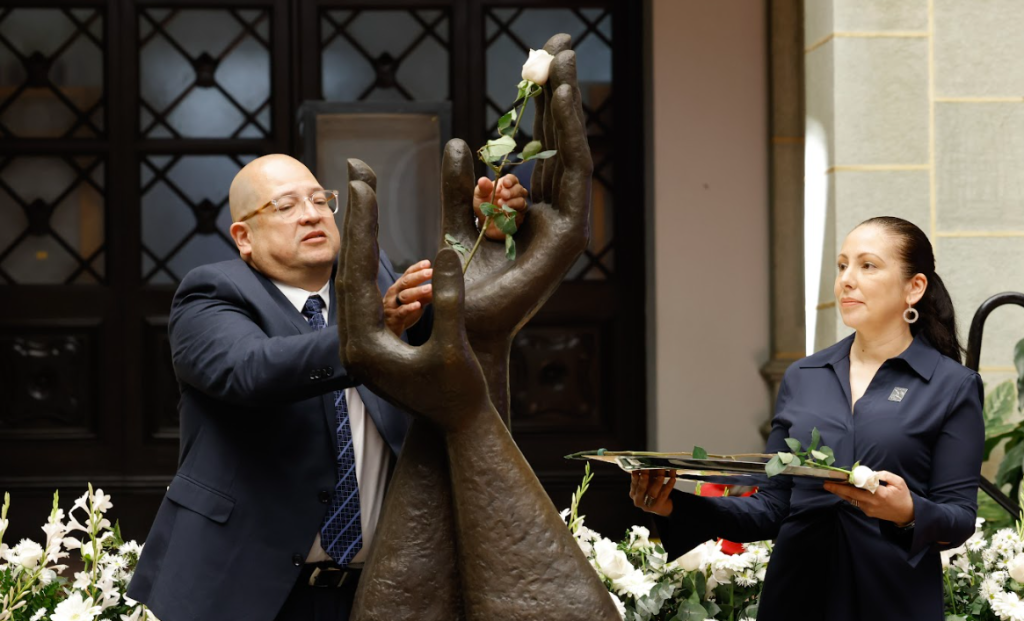 Resaltó que este acto representa, además, un llamado a la memoria responsable. A la unidad nacional y a la corresponsabilidad de preservar la paz como un bien público esencial para el presente y el futuro de Guatemala.