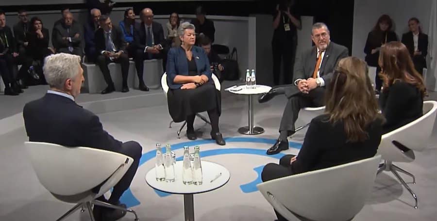 Como parte de su visita de trabajo a Alemania, el mandatario Bernardo Arévalo participó como orador en la Sesión Un camino difícil: gestionar los flujos mundiales de migrantes y refugiados.