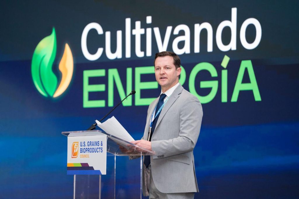 La apertura del encuentro incluyó palabras de Ryan LeGrand, presidente y CEO del Consejo de Granos y Bioproductos de los Estados Unidos (USGBC) acompañado por representantes del Consejo, entre ellos Mark Wilson, presidente de la Junta Directiva del Consejo, como parte de la delegación institucional que participó en este intercambio técnico regional.
