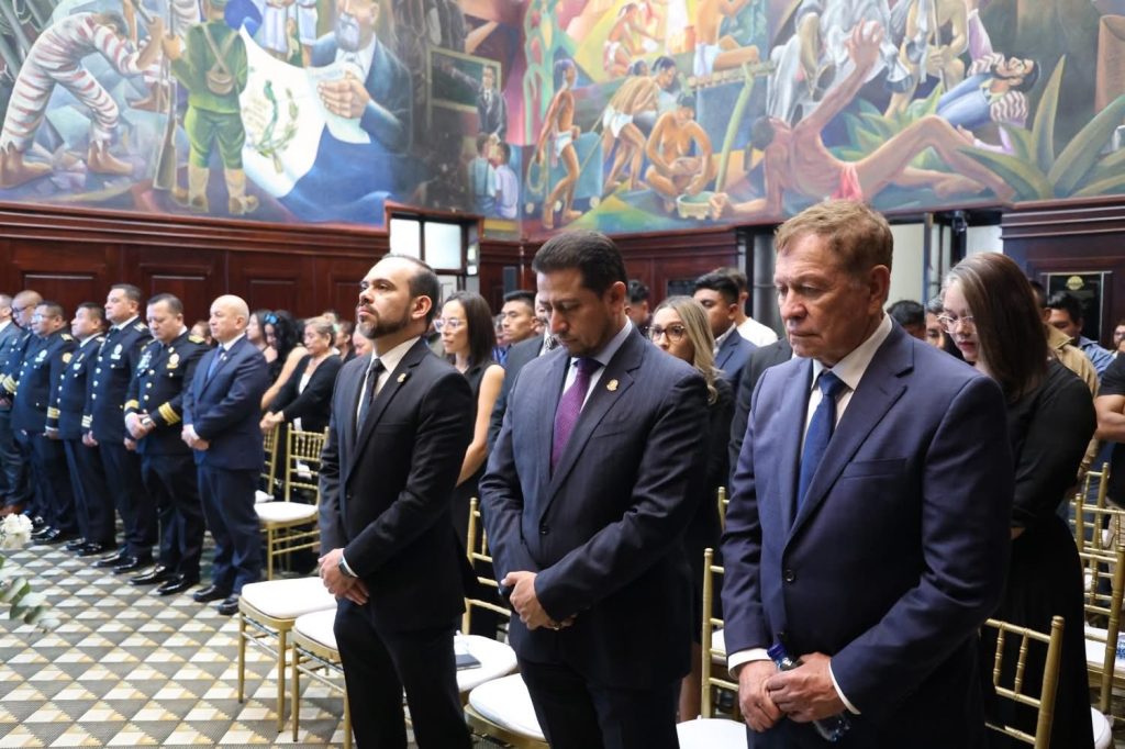 “Es más que un acto protocolario, queremos contar la memoria con respeto y reconocimiento por la entrega al servicio del país, me delegaron en la Junta Directiva del Congreso de la República y de todos los diputados de este alto organismo de Estado y rendimos un homenaje póstumo a los agentes fallecidos que se entregaron a cuidar, proteger a la población. Gloria y reconocimiento a los elementos de las fuerzas de seguridad fallecidos en ataques por criminales y respeto a sus familias», dijo el diputado Nery Ramos, Primer Vicepresidente del Congreso.