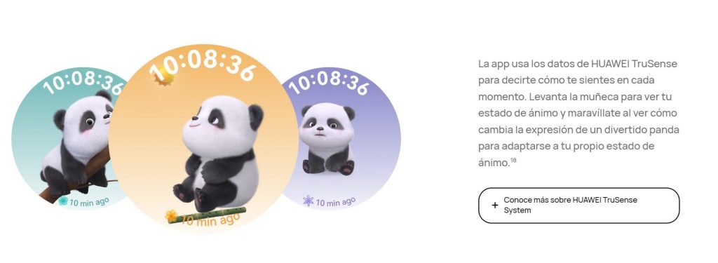 Bienestar Emocional es una innovadora herramienta desarrollada por Huawei junto al Instituto de Psicología de la Academia China de Ciencias, que detecta y registra automáticamente tu estado emocional en tiempo real usando el sensor PPG y el sistema HUAWEI TruSense. A diferencia de otras funciones tradicionales de salud, este avance interpreta indicadores del sistema nervioso autónomo para ofrecer un panorama más completo de tu bienestar. Incorpora subherramientas como pruebas de estrés, ejercicios de respiración y una esfera de reloj animada para visualizar tus emociones con personajes como un oso panda, un gato, un conejo y una nube, que representan distintos estados de ánimo de forma amigable y visual.