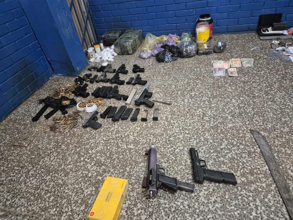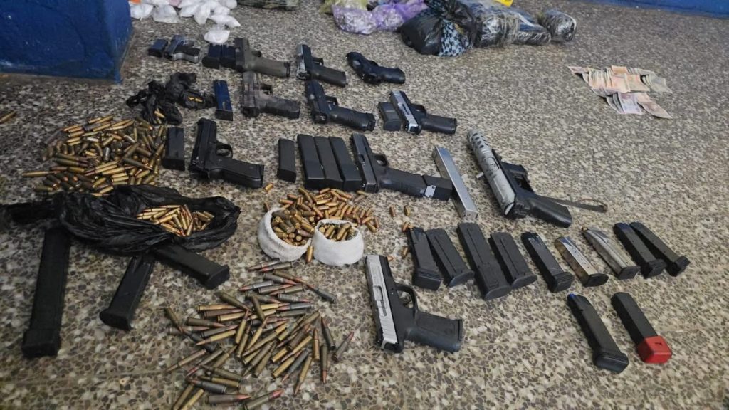 El SP y la PNC dieron a conocer que durante la revisión incautaron en total 13 armas de fuego, incluyendo dos subametralladoras, que demuestran la gravedad del asunto y cómo hubo condiciones de peligro para los guardias en el operativo de esta mañana.