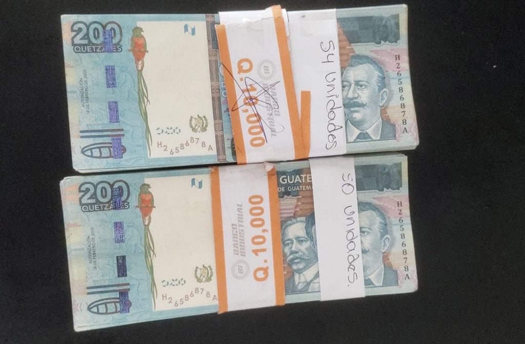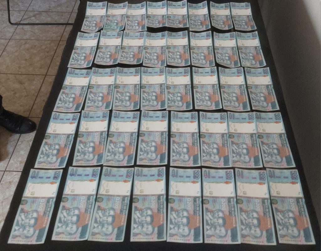 Los comerciantes al percatarse denunciaron inmediatamente el caso a la PNC, y los individuos al verse descubiertos trataron de darse a la fuga a bordo del automóvil P-880GGY, marca Mazda, siendo copados, y en un compartimiento del vehículo se incautaron billetes falsos que en moneda real serían Q.20 mil 800, eran copias de la denominación de Q. 200.