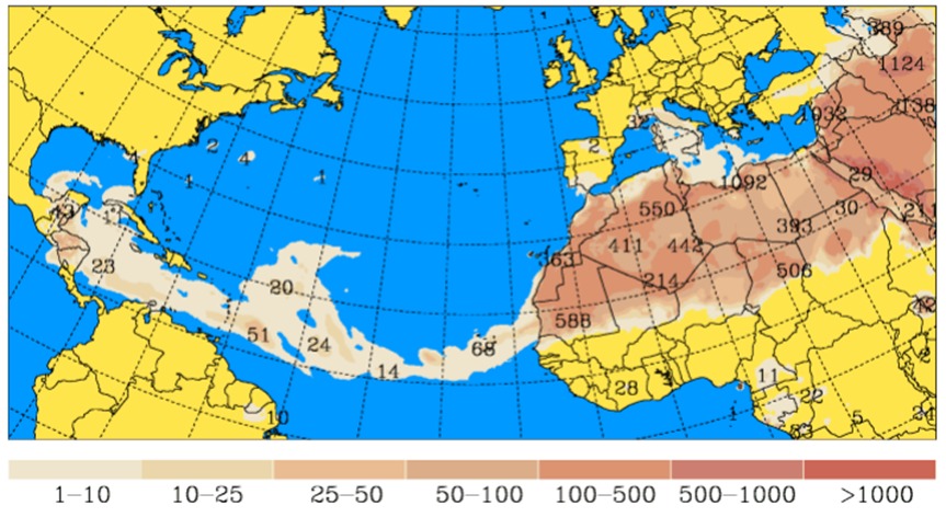 El 23 de julio, se ha registrado el ingreso de una masa de polvo del Sahara a Guatemala, con concentraciones máximas estimadas alrededor de 97 µg/m3 (microgramos por metro cúbico). Previendo que las mayores concentraciones se mantengan entre el 23 y 24 de julio.