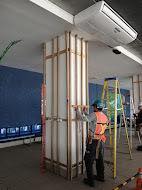 Pensando también en la comodidad de los pasajeros, se instalaron centros de carga en las columnas de la sala de espera, equipados con tomacorrientes, cableado, repisas, iluminación LED y un elegante recubrimiento de madera. Esto mejora la conectividad de los viajeros y hace más agradable su tiempo en el aeropuerto.