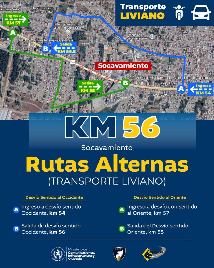 Los trabajos de reparación en el kilómetro 56 de la ruta Interamericana aldea Buena Vista, Chinaltenango ya iniciaron este domingo y se han habilitado rutas alternas.