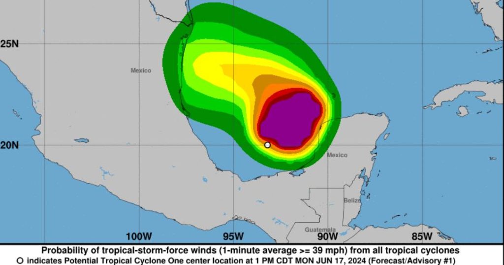 El primer potencial ciclónico tropical de la temporada 2024 se ha formado en el golfo de México, con la posibilidad de convertirse en tormenta tropical durante las próximas horas y llegue a las costas mexicanas el jueves 20 de junio.