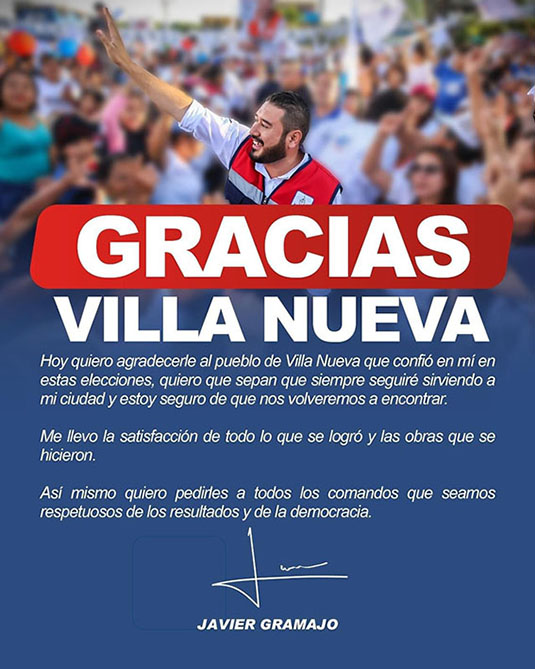 El alcalde Javier Gramajo rompe el silencio después de las elecciones del pasado domingo y agradece a los vecinos que le dieron su apoyo, además de pedir a las bases respetar el resultado dado a conocer por el Tribunal Supremo Electoral.