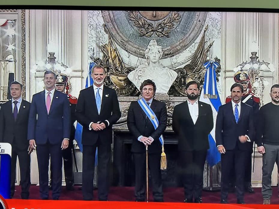 A la investidura de Milei acuden varios mandatarios latinoamericanos, como el chileno Gabriel Boric y el paraguayo Santiago Peña; y europeos, entre estos el ucraniano Volodimir Zelenski y el húngaro Viktor Orbán, además del rey de España, Felipe VI.