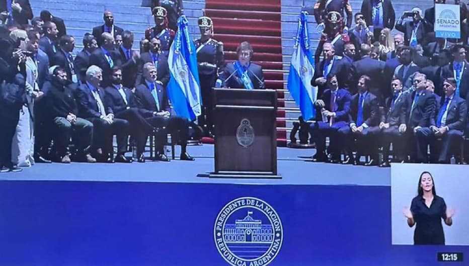 Con banderas, camisetas de la selección de fútbol, aplausos y gritos de «libertad», Milei asumió la presidencia argentina. A la cita acudieron mandatarios de países latinoamericanos y autoridades europeas.