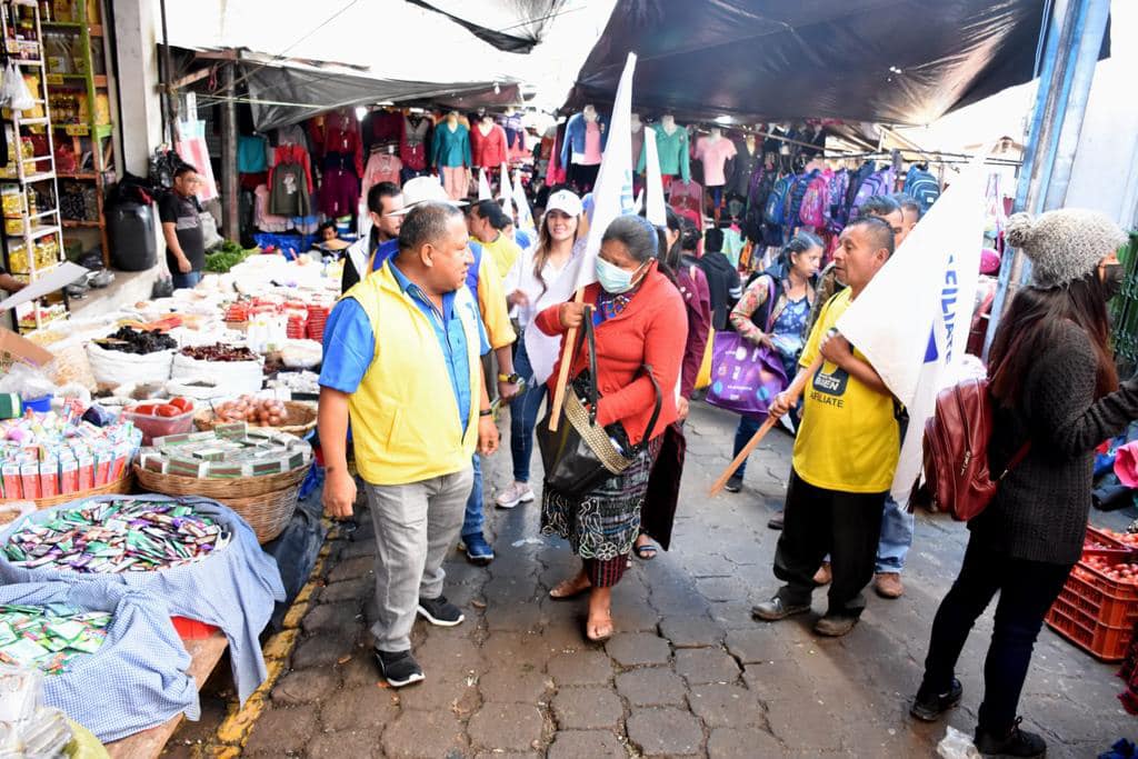 EN SAN JUAN SACATEPEQUEZ…La dirigencia del Partido Bienestar Nacional BIEN realizó en San Juan Sacatepéquez una caminata de afiliación en el casco y el mercado municipal con el coordinador municipal Gilberto Jocop y el coordinador del departamento de Guatemala cesar Dávila.