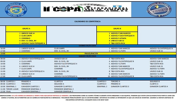 El equipo Jumps, dirigido por el entrenador Giovanni Orozco, se prepara para participar en la II Copa Internacional sub 15 femenino de Voleibol a realizarse del 4 al 6 de julio en El Chol, Baja Verapaz, con la participación de equipos internacionales quienes estarán presentes en esta fiesta deportiva.
