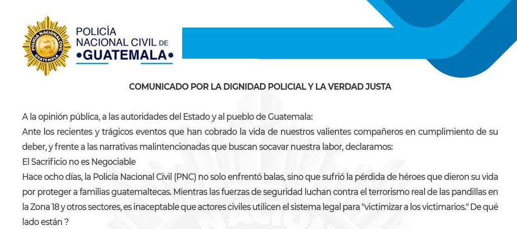 “Es una ofensa a la memoria de nuestros caídos que los derechos humanos y las garantías penales sean invocados con mayor agilidad para proteger a estructuras criminales que para respaldar al agente que patrulla bajo fuego” indica la PNC