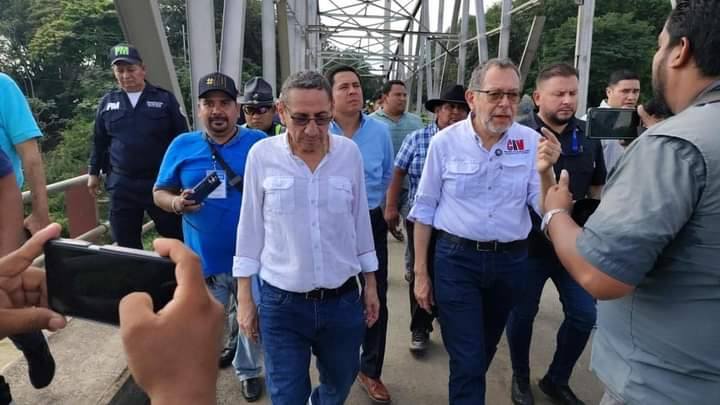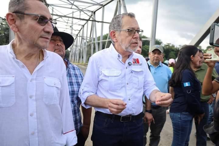El ministro de comunicaciones Félix Alvarado, verificó este jueves los trabajos que se realizan en el puente Nahualate, que recientemente tuvo daños en su estructura.