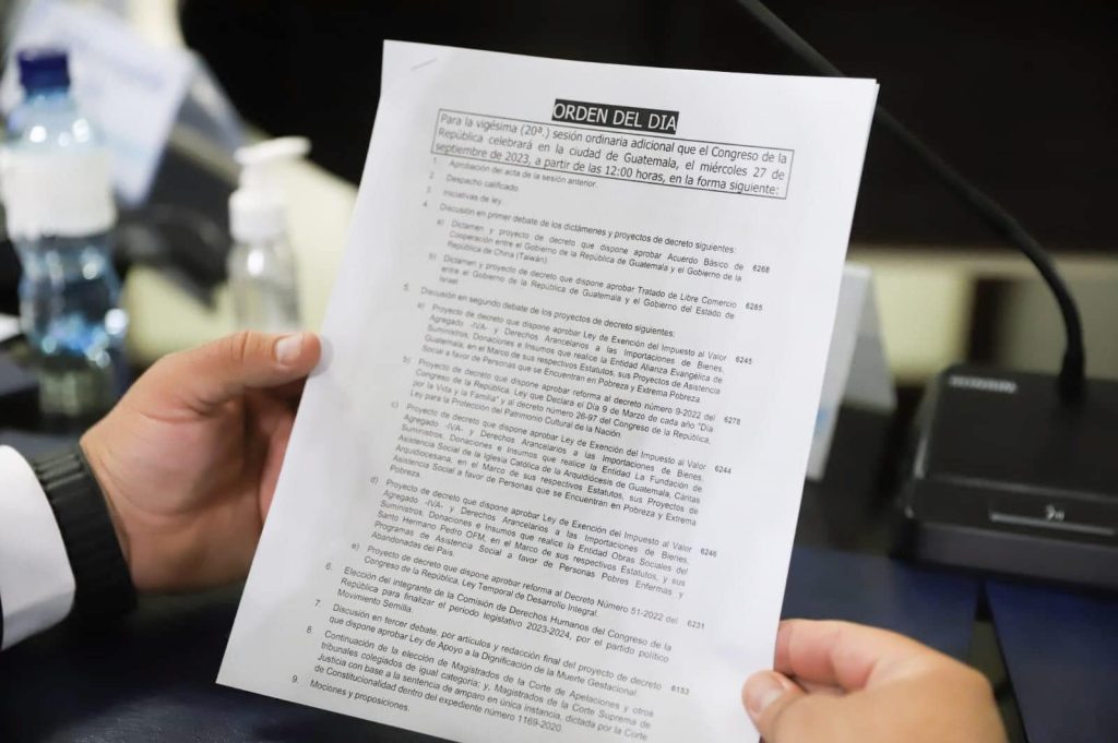 Hoy los jefes de bloque tomaron esta decisión, por mayoría, ya que no estaba incluida en la orden del día para la sesión extraordinaria de mañana, y fue a petición del expresidenciable del partido oficial de VAMOS, aunque llega a esa reunión por el Partido de Avanzada Nacional (PAN), Manuel Conde.