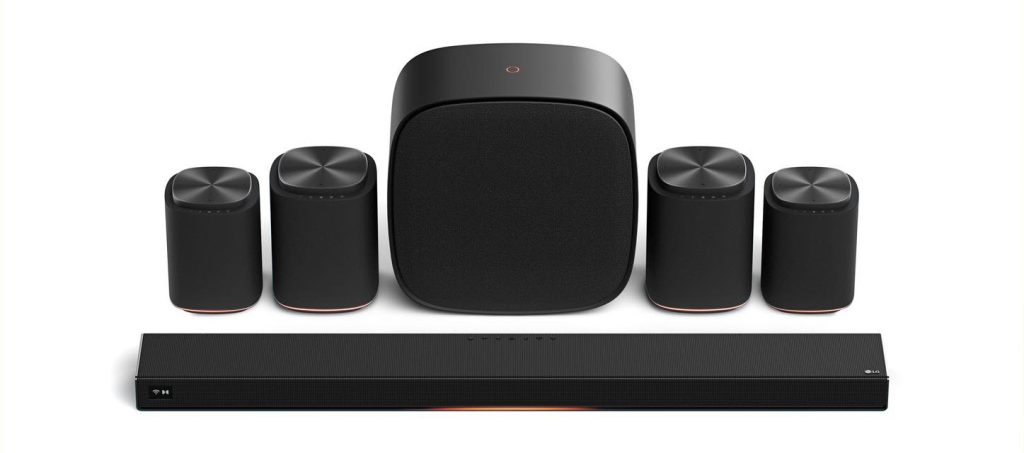 LG Sound Suite funciona de manera fluida con los televisores premium de LG, permitiendo a los usuarios emparejar cualquiera de sus componentes inalámbricos —incluidos los parlantes surround M7 y M5, y el subwoofer W7— con o sin la barra de sonido H7, para un total de 27 configuraciones posibles.