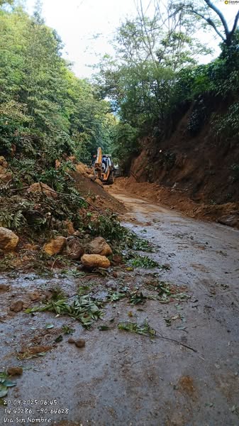 ESCUINTLA…Personal de Servicios Públicos de la Municipalidad de San Vicente Pacaya realizan esta mañana acciones de limpieza en el derrumbe registrado en el Km 44 de la ruta San Vicente Pacaya, a ruta al Pacífico Escuintla.