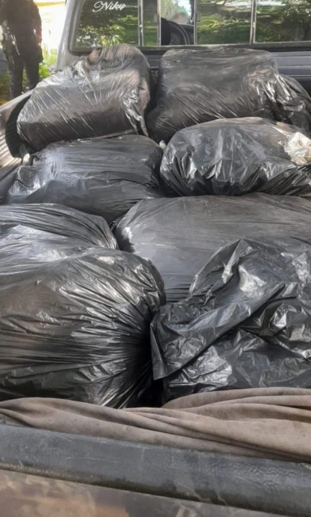 Tras una acción policial a orillas del río Naranjo y límite entre Ayutla y La Blanca, San Marcos, policías de la DIPAFRONT, localizaron un pick up que trasladaba 10 bultos con marihuana, con un peso aproximado de 10 kilos cada uno.