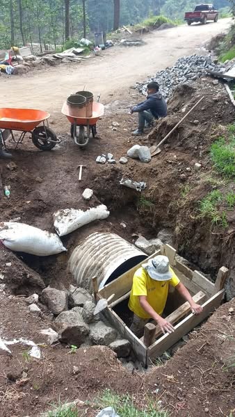 Con el objetivo de asegurar el paso vehicular y prevenir inundaciones o derrumbes durante el invierno, se realizan obras de cambio de tubería y construcción de cabezales en el tramo Los Encuentros, San Buena Aventura, Caserío Paquisis, aldea Pixabaj, en el municipio de Sololá.