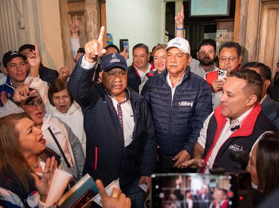 El binomio llegó a la sede de Vamos con un grupo de simpatizantes quienes vitoreaban que ahora “Vamos por el triunfo”.