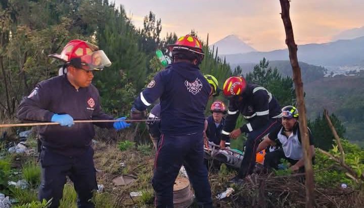 Bomberos Voluntarios y Bomberos Municipales Departamentales en el lugar asisten a los heridos y llevan al hospital. regional de Chimaltenango