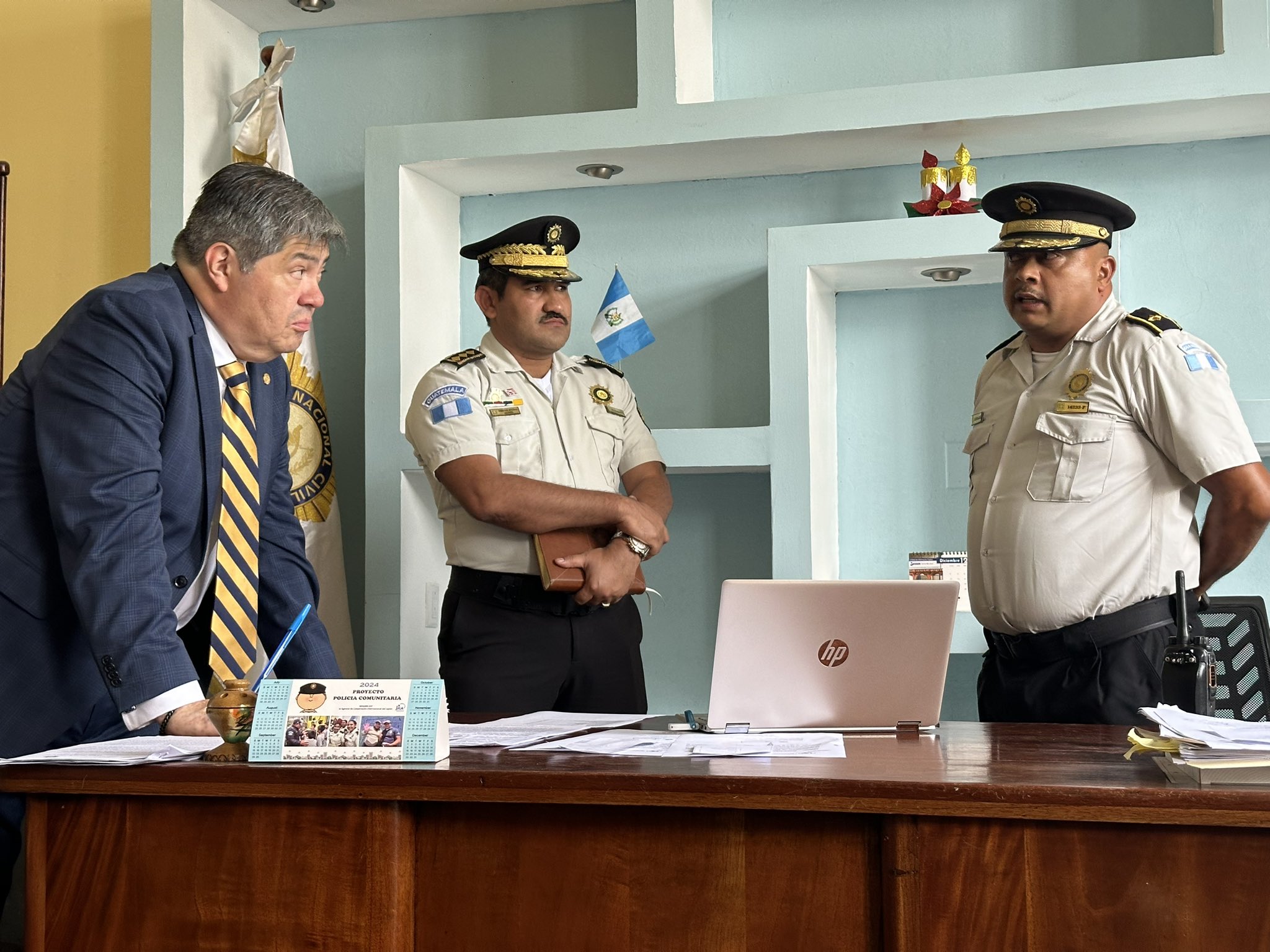 El ministro de Gobernación, Francisco Jiménez, acompañado por el director general adjunto de la Policía Nacional Civil (PNC), Helver Beltetón, llevó a cabo una visita de supervisión en la Comisaría 11. Durante la inspección, se enfocaron en fortalecer el trabajo operativo de la institución, brindando instrucciones al subcomisario Elder Salazar, quien lidera la Sección de Operaciones.