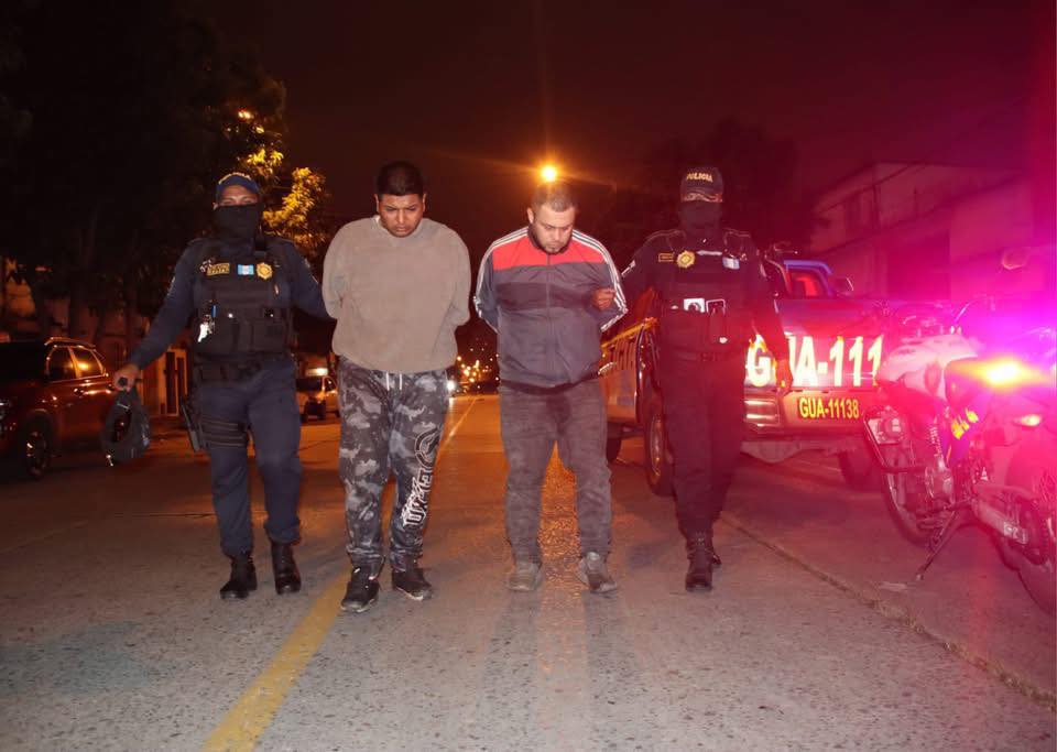Policías de la comisaría 11 capturaron a Hamilton Alfredo Gómez Orozco, alias “El Enano” y Bayron Ricardo Fuentes Hernández, alias “El Gato”, ambos de 19 años, sorprendidos por efectivos de la Policía Nacional Civil PNC cuando despojaban pertenencias a pilotos automovilistas y transeúntes; al notar la presencia policial, huyeron en una motocicleta sin placas, pero fueron interceptados a pocas cuadras del lugar.