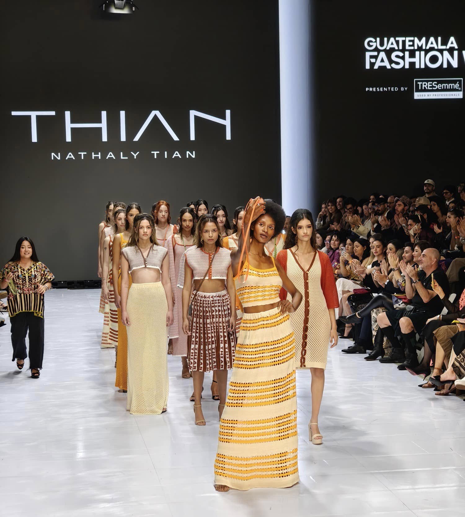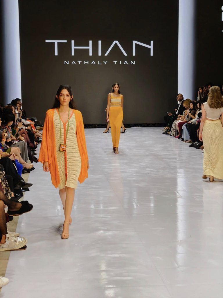 THIAN inspirada en la naturaleza y las emociones, creo varias piezas que reflejan una conexión profunda entre la esencia y los textiles, trabajando desde cero con hilos que simbolizan la fusión entre el arte y el ser interior. A través del color blocking, cada diseño reflejó la vibrante paleta de colores, mientras las texturas de los tejidos evocaban la riqueza cultural de la icónica montaña.