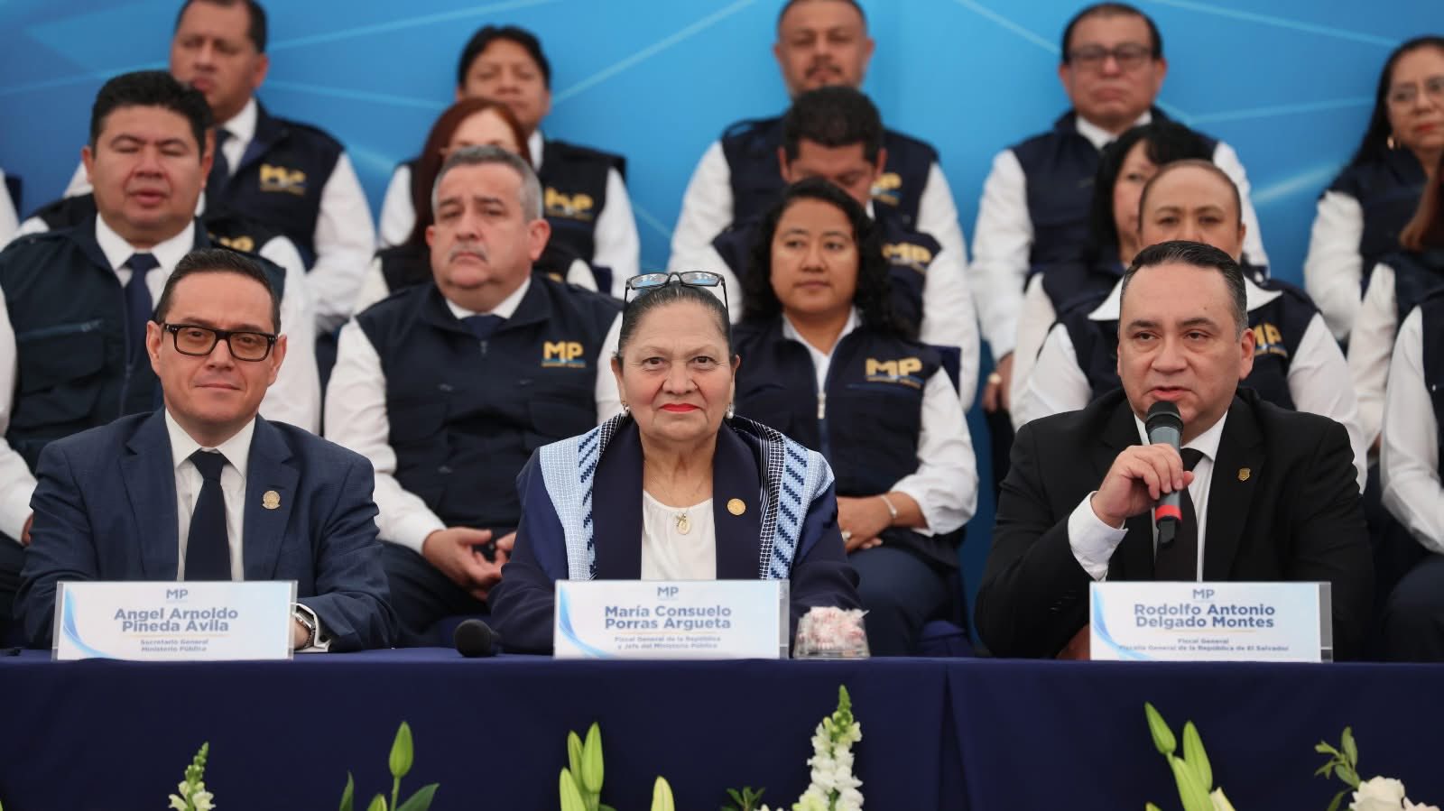 La Fiscal General de la República y Jefa del Ministerio Público MP Consuelo Porras Argueta; el Fiscal General de la República de El Salvador, licenciado Rodolfo Antonio Delgado Montes, y el secretario General del Ministerio Público de Guatemala, licenciado Angel Arnoldo Pineda Ávila, ofrecieron conferencia de prensa para informar sobre la visita del Fiscal General de El Salvador y una delegación de funcionarios.
