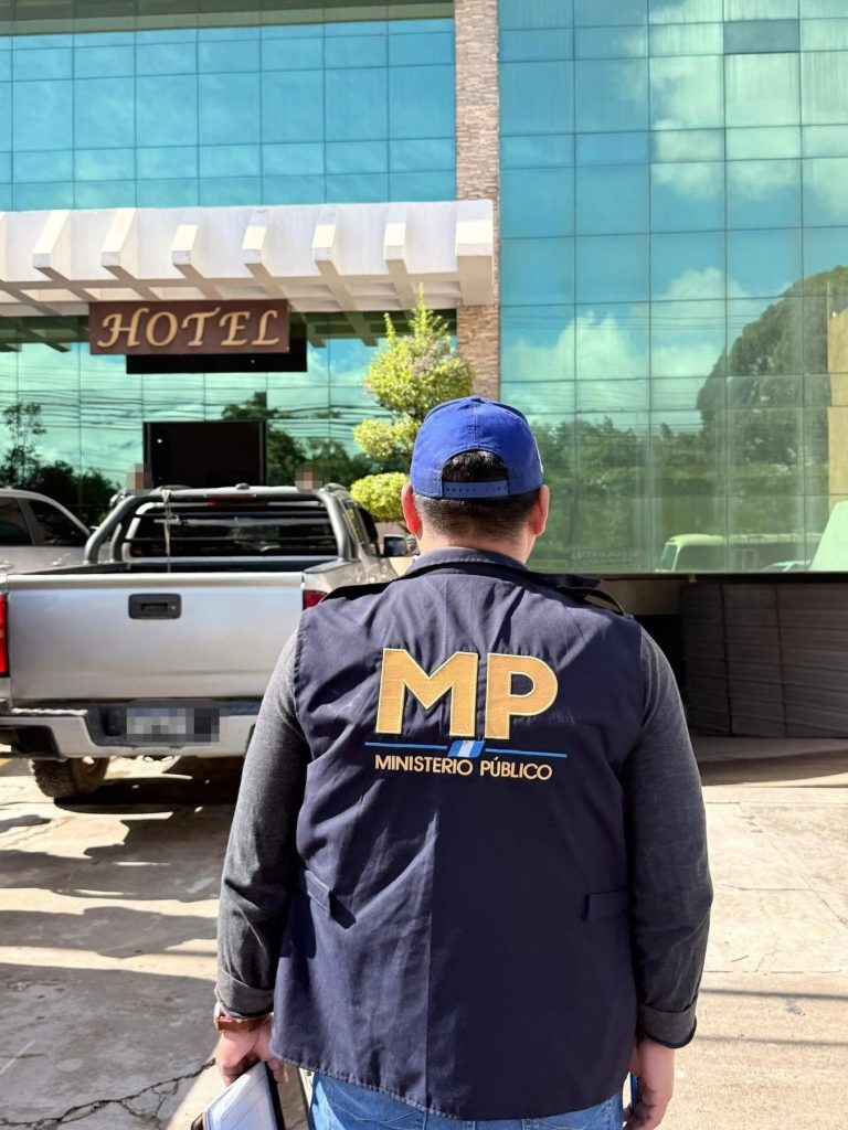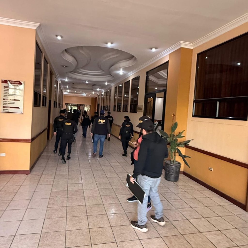 La Fiscalía de Extinción de Dominio en coordinación con el fiscal regional metropolitano y con acompañamiento de la Policía Nacional Civil PN realizo esta mañana diligencia de allanamiento, inspección, registro y secuestro de evidencia en el hotel y centro de convenciones California, vinculado al diputado de la UNE Martin Nicolás Segundo ubicado en el departamento de Huehuetenango.