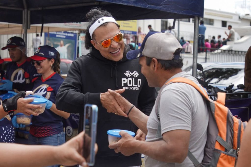Los asistentes, se formaron ordenadamente para recibir de manos del alcalde Neto Bran, las porciones de la paella más grande, momento que fue aprovechado por muchos para retratarce con el mas popular de todos los alcalde de nuestro país.