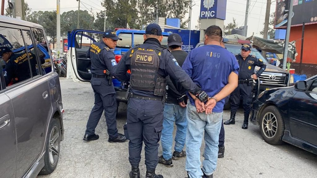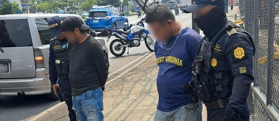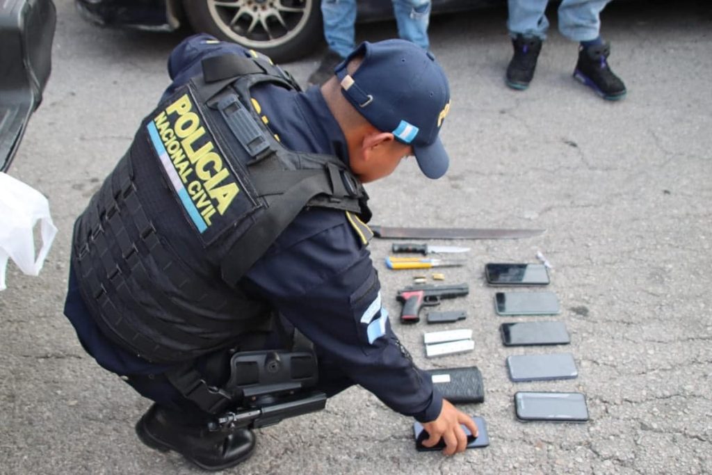 La PNC reporta la aprehensión de Leonel de 46 años, y Edy de 39 años, tripulantes de la camionetilla marca Scion P-663JGH de color gris policromado, decomisándoles una réplica de pistola, un machete, un cuchillo, una cuchilla, seis celulares, dos tolvas, cuatro municiones y una cartera para mujer.