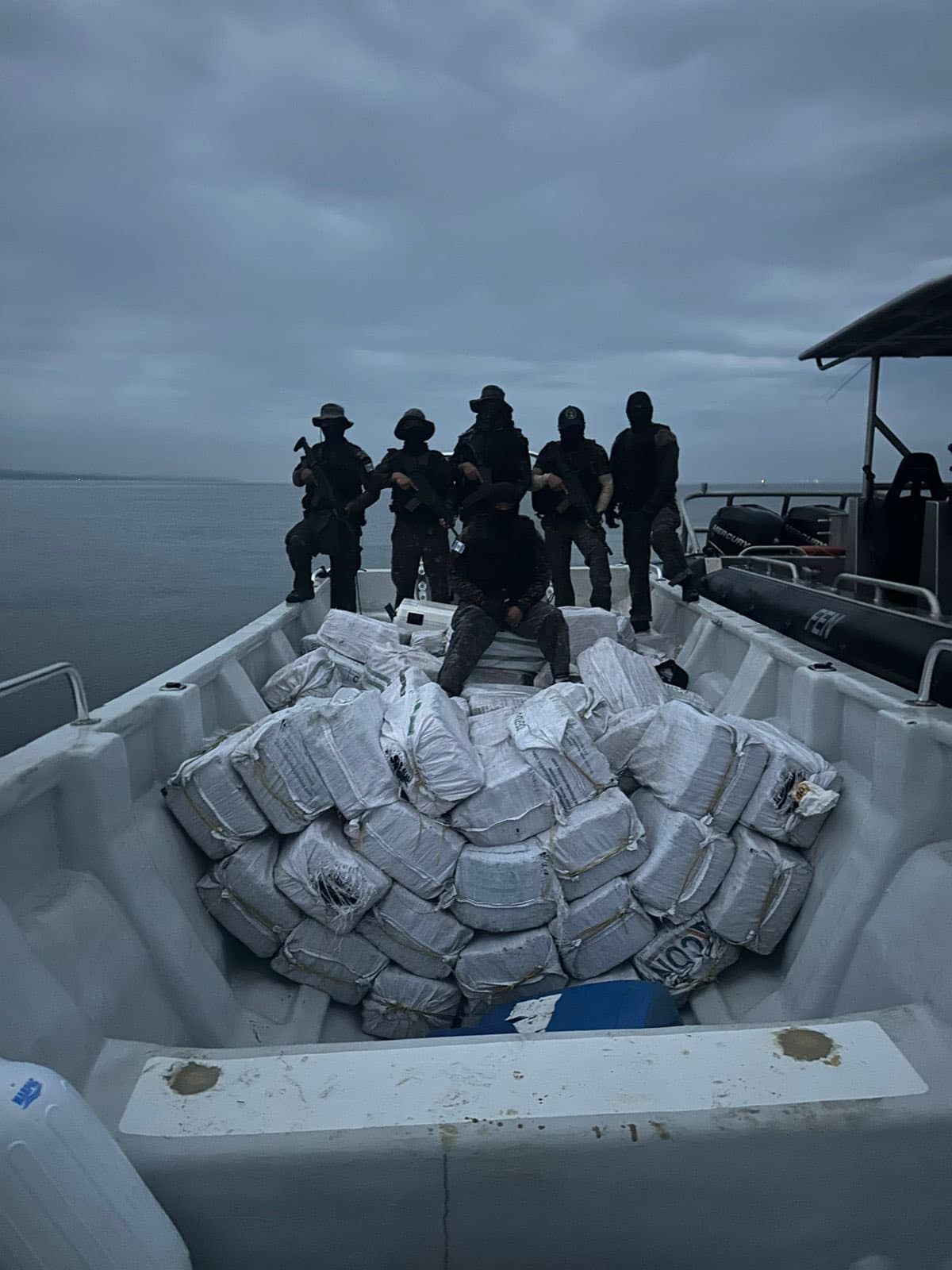Nuevamente el gobierno de Bernardo Arévalo por medio de la Marina de la Defensa Nacional del Ejército, como Autoridad Maritima Nacional, interceptó en aguas del Caribe, Izabal, una embarcación con tres (03) motores fuera de borda de 350 HP, localizando en su interior posibles ilícitos que podrían ser decenas de kilos de Cocaina
