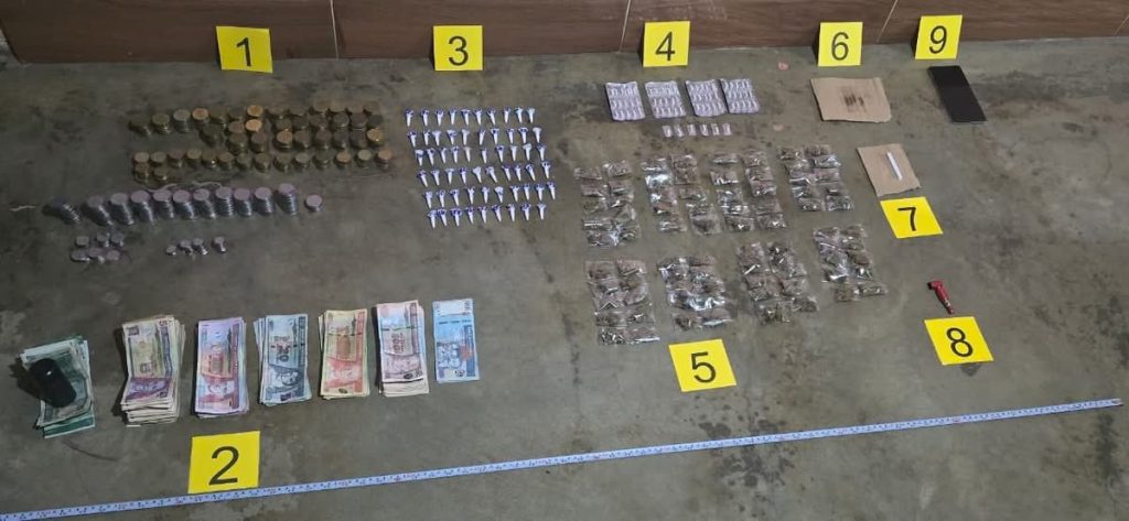 Se localizaron 59 «colmillos» con cocaína, 80 bolsas transparentes con marihuana, 66 cápsulas de crack, seis pipas para el consumo de drogas y un teléfono celular. Además, se decomisan unos Q.7 mil 966, dinero que presuntamente sería producto de la venta de droga al menudeo.