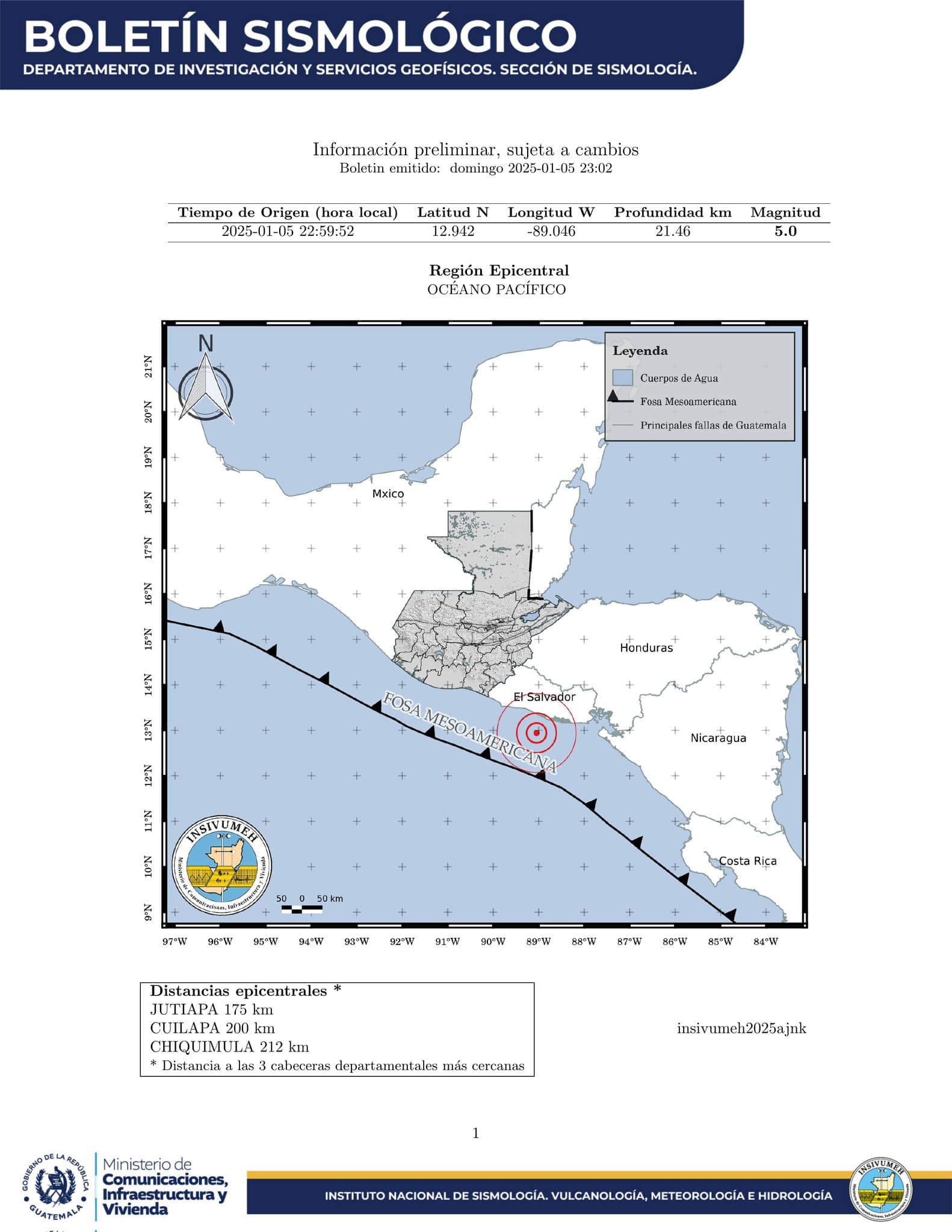 ESTÁ NOCHE TEMBLÓ….. nuevamente en el Océano Pacífico tembló la noche de este domingo siendo las 22:59 con una magnitud de 5.0 según reporta el Insivumeh