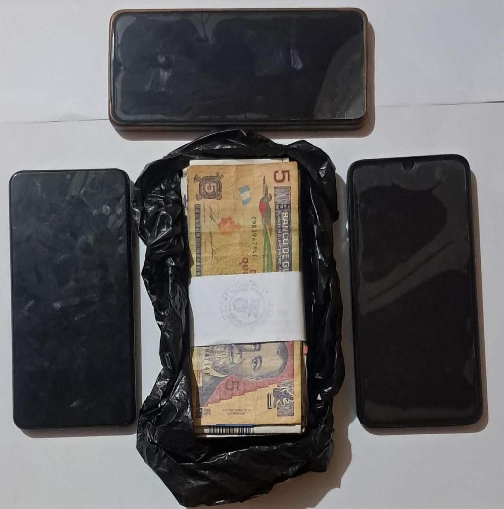 Durante la operación, los investigadores incautaron un paquete que simulaba la cantidad de Q.8 mil que exigían a un comerciante, así como tres celulares utilizados para comunicarse con la víctima. Además, los detenidos se transportaban en un taxi “pirata”, color negro, marca Toyota, con placas P-561KKV, el cual fue consignado.