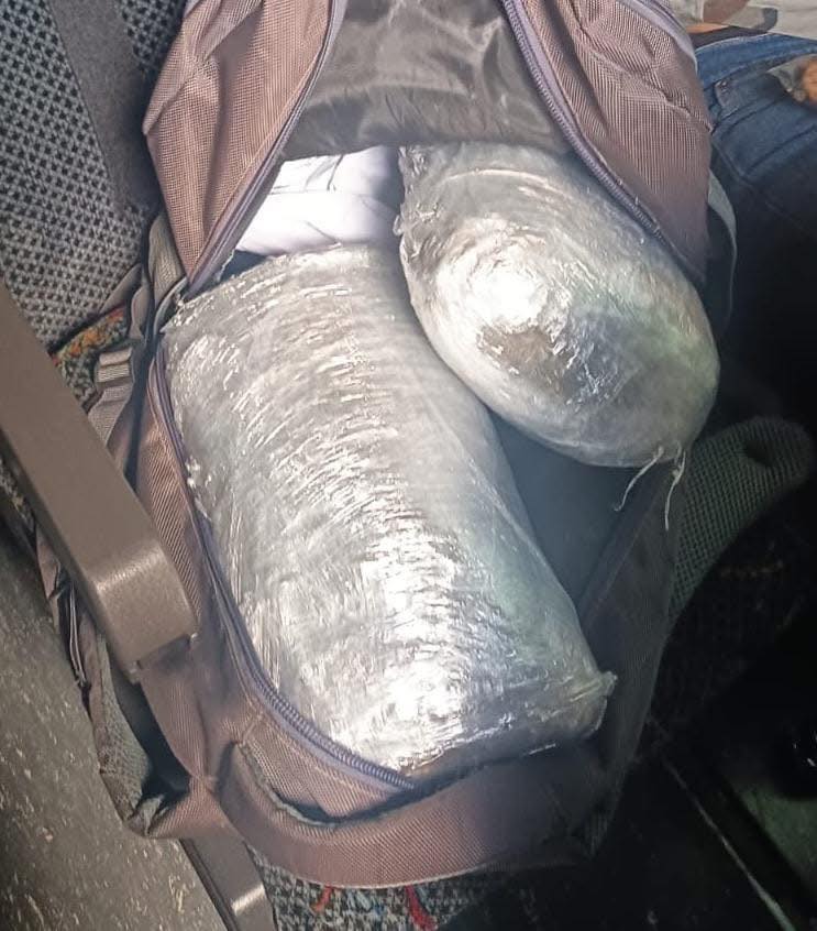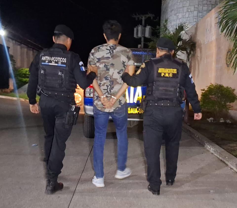 En el Puesto de Control Interinstitucional ubicado en el Km. 185.3 ruta CA-2, Nuevo San Carlos, Retalhuleu, policías de la Subdirección General de Análisis de Información Antinarcótica SGAIA detuvieron a Alexis Maldonado, de 24 años, alias «Zancudo» quien en uno de los compartimientos del autobús del que era pasajero, en su maletín se descubrió que escondía dos paquetes con marihuana valorados aproximadamente en Q.30,000.