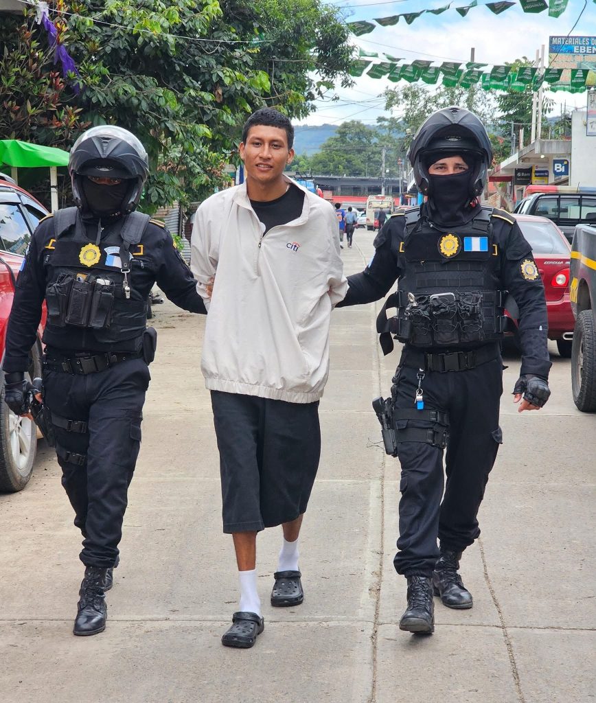 En la aldea El Cerinal, Barberena, Santa Rosa, policías del Grupo Especial Contra Extorsiones GECE, reportan la capturan de Jorge Mario Lemus Dávila, apodado «El Maniático de Santa Rosa», de 22 años, en cumplimiento a una orden judicial emitida a principios de mes, sindicado del delito de Homicidio.