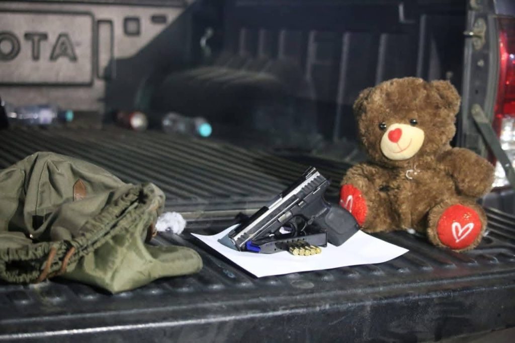 Investigadores de DIPANDA, localizaron una pistola calibre 9 mm. que estaba oculta dentro de un oso de peluche, durante revisiones en las cercanías del Centro Preventivo para Hombres de la zona 1 de Quetzaltenango.